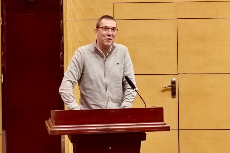会见结束后,学校管理学院和英国中央兰开夏大学人文学院就双方匹配专业及合作的细节进行了研讨。瑟斯顿在留学生院306学术报告厅为管理学院师生们作了题为《英国教学与运营管理方式》的讲座。他详细介绍了英国高校的教学与运行管理模式,对英国的学制结构、教学模式和学生素质培养方面展开了深入的案例讲解,并与在场的师生进行了互动交流。讲座结束后,双方教师与学生进行了热烈的互动环节,就教育教学与生活文化等方面的问题进行了广泛探讨。