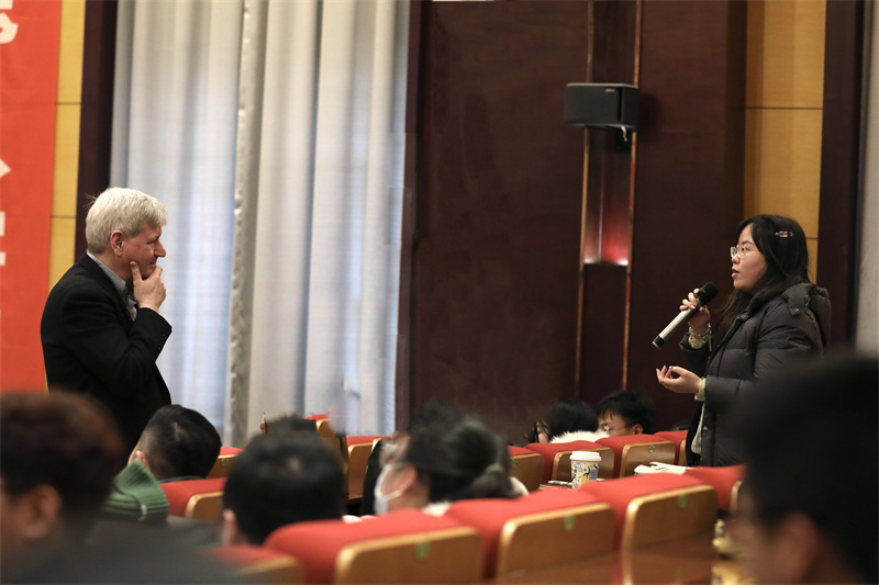 会后,在留学生院306学术报告厅,罗伯特为艺术与传媒学院师生作题为“视觉传达、室内设计、时尚产业国际发展情况及未来发展情况”的学术讲座,在广大师生中引起了强烈反响。罗伯特以时尚产业为切入点,讲述了多个艺术专业领域的产业发展光谱,讲座内容深入浅出,为师生们带来了全新的学术视角和启发。与会师生积极就讲座内容及国际合作办学等方面的问题与罗伯特进行了亲切互动,现场气氛热烈。师生们还和罗伯特互留了联系方式以便将来进一步交流并合影留念。